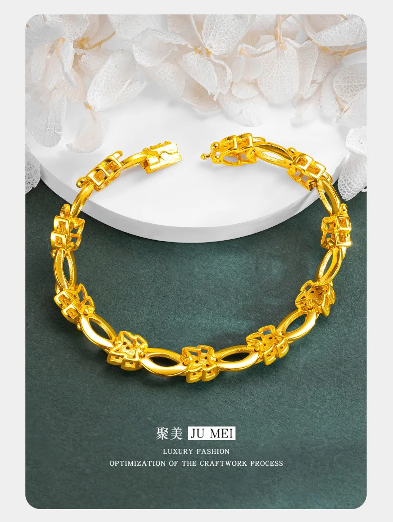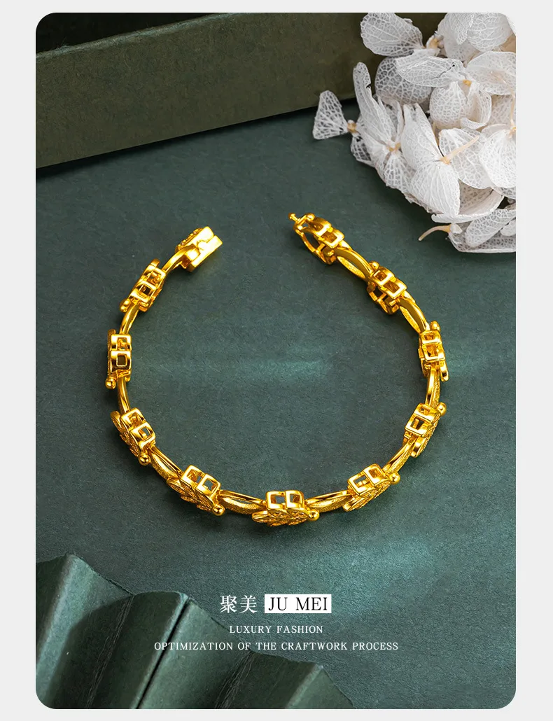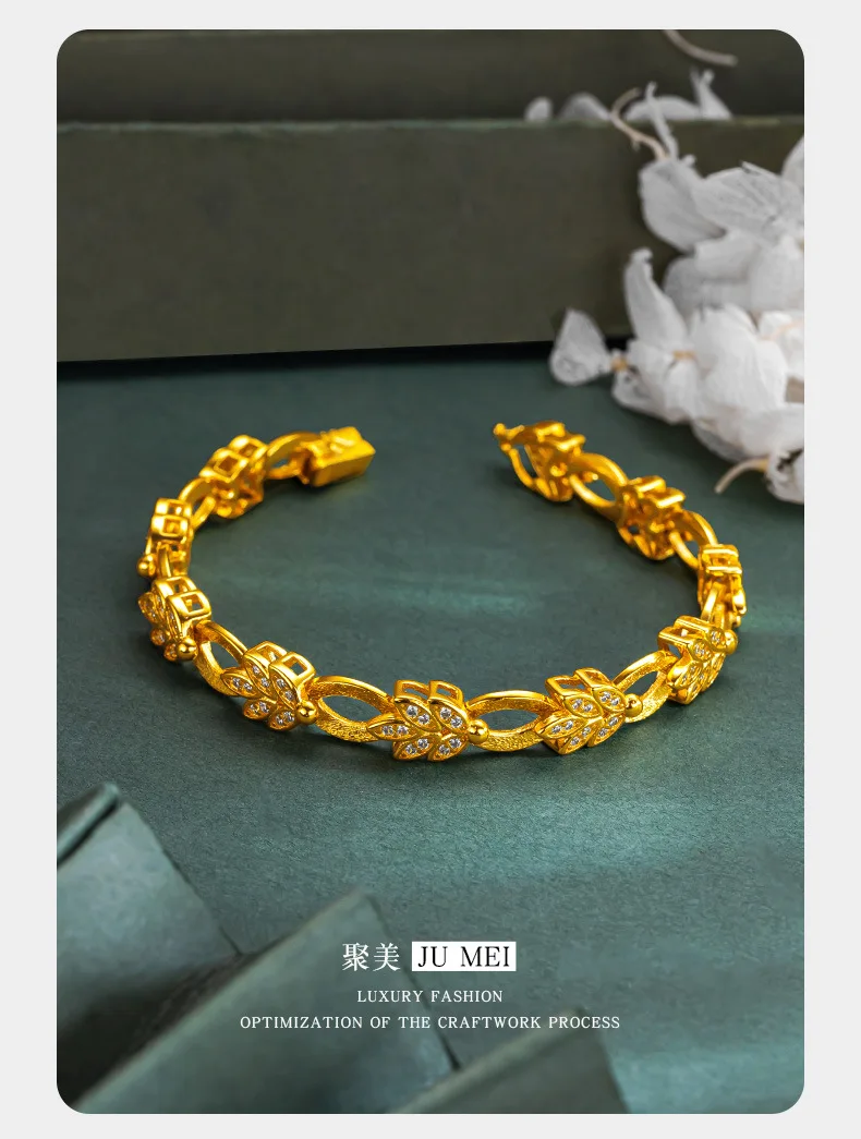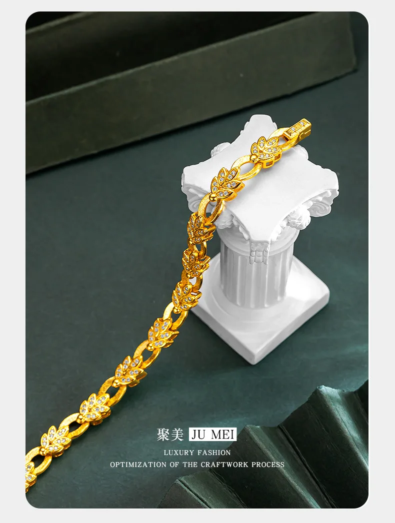 9999 24K real gold diamond leaf bracelet with gold color clip buckle design as a birthday gift for your girlfriend