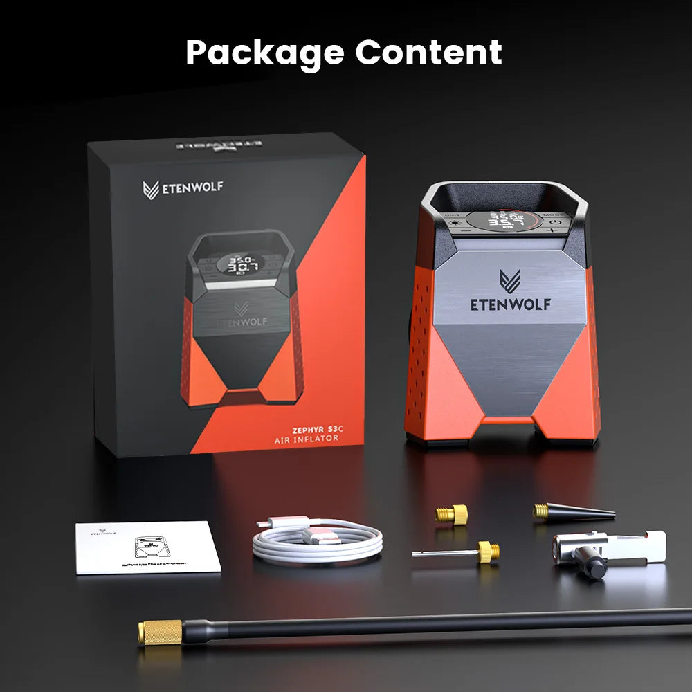 ETENWOLF ZEPHYR S3C Portable Air Compressor 100% Duty Cycle Car Tire Inflator 7800mAh for Cars, Motorcycles, Bicycles Balls