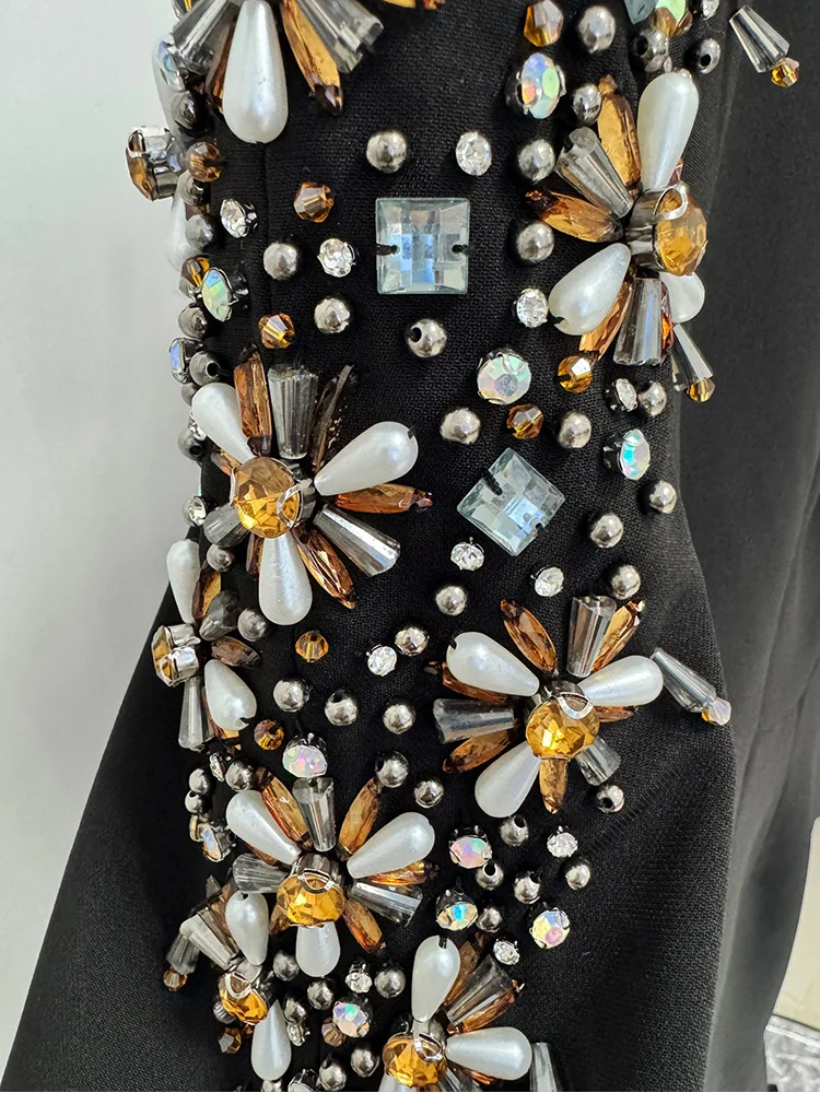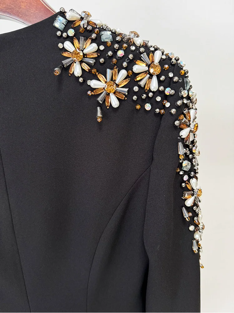 HIGH STREET Newest Fashion 2025 Designer Party Vestido Women's Diamonds Beaded Split Long Maxi Dress