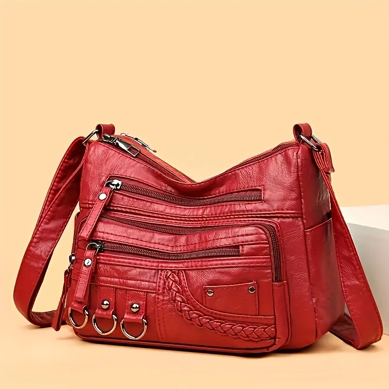Vintage PU Crossbody Bag, Retro Multi Layer Shoulder Bag, Women's Fashion Handbag & Purse